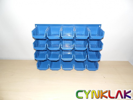 Na płycie można zawiesić 20 pojemników (4 rzędy po 5 sztuk)